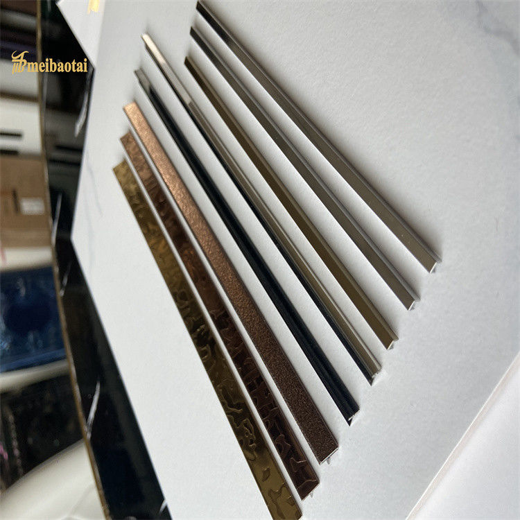 201 304 กระเบื้องสแตนเลสตกแต่งตัดแต่ง T รูปร่างทองนูนสำเร็จรูป