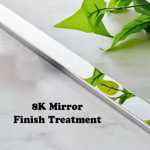 การตกแต่งผนังด้วยสแตนเลสสตีล U profile แบบกระจก 8K